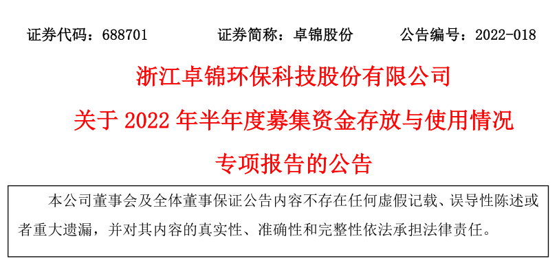 關于2022年半年度募集資金存放與使用情況專項報告的公告